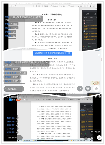 中新河南網(wǎng)9月16日電(通訊員何利敏)少年兒童是祖國的花朵、未來的棟梁,他們每一步成長都至關(guān)重要。為營造未成年人健康成長的環(huán)境,進一步提高未成年人的法治意識和自我保護能力,維護未成年人的合法權(quán)益,9月13日上午,鄭州高新區(qū)外國語小學五龍口校區(qū)各班班主任老師通過直播課組織學生學習《中華人民共和國未成年人保護法》和《未成年人學校保護規(guī)定》。