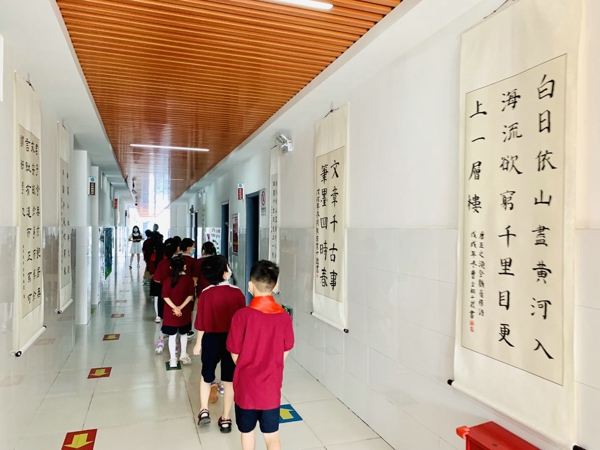 隨著同學(xué)們陸續(xù)返校,安靜許久的校園也重新熱鬧了起來(lái)。這個(gè)學(xué)期,我們用班級(jí)游園的方式開(kāi)啟新的學(xué)校生活。從早上8點(diǎn)20分開(kāi)始,二至六年級(jí)的各班同學(xué)排著整齊的隊(duì)伍參觀學(xué)校美術(shù)組布置的學(xué)生版畫制作、創(chuàng)意花傘、手工制作、仿銅浮雕作品、書法、繪畫等作品。這樣的開(kāi)學(xué)第一課有新意、有創(chuàng)意、有吸引力。同學(xué)們表示很贊、很喜歡。