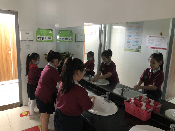 再看,整齊的步伐,課間同學(xué)們有序的如廁。讓我們拉近鏡頭,我們的學(xué)子正在用自己的行動(dòng)踐行七步洗手法,衛(wèi)生安全牢記于心。