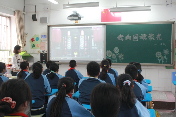 9月27日南學街小學在教室共同觀看愛國主題宣傳視頻培養(yǎng)愛國情感