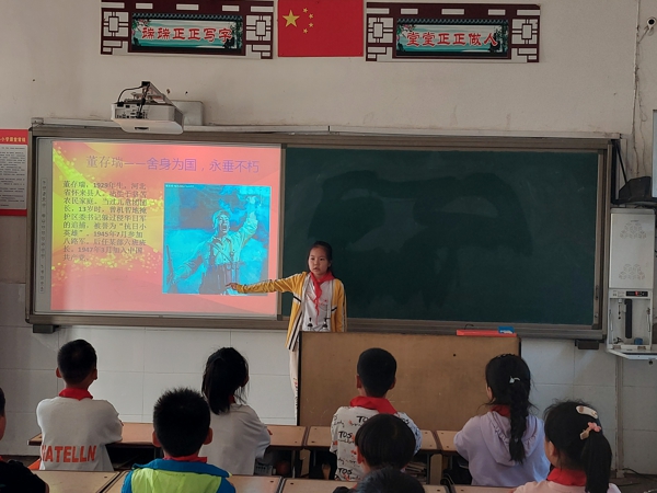 隊會課上首先由各中隊輔導員帶領全體學生回顧了無數(shù)先烈投身革命英勇報國的歷史,號召大家牢記革命先烈的無私奉獻精神,追尋他們的崇高理想,將傳統(tǒng)革命精神發(fā)揚光大,將愛國主義精神融入實際行動中,努力學習,爭做德、智、體、美、勞全面發(fā)展的社會主義建設者和接班人。之后少先隊員代表宣讀倡議書。她指出一批又一批英烈挺身而出,遇強敵而不懼,臨死神而不屈,用鋼鐵身軀,使貧窮落后的中國走向獨立自主、繁榮富強,倡議大家要用英雄們的無畏精神激勵自己,用烈士們的擔當意識鼓舞自己,刻苦學習,腳踏實地,銳意進取,以執(zhí)著的信念、優(yōu)良的品德、豐富的知識、過硬的本領,擔負起時代使命。