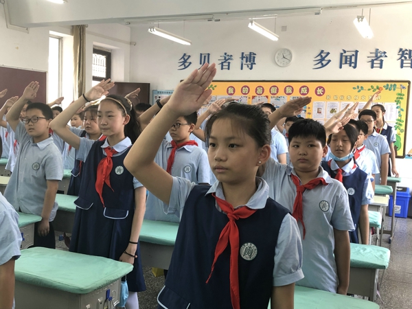 在隊會課上,隊員們在輔導員老師的帶領下一起學習先輩先烈舍生忘死、無私奉獻的崇高精神,通過講述一個個生動的英烈故事,隊員們追尋英雄人物足跡,樹立為實現(xiàn)中華民族偉大復興而努力學習的遠大志向。