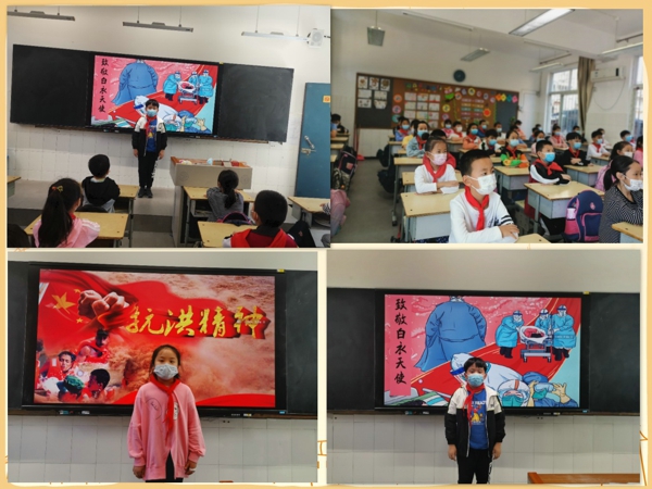 活動中,隊員們共同參與講述黨史故事,探尋黨的故事,感悟黨的初心,并通過講述抗洪、防疫“車輪戰(zhàn)”“雙線站”中“天使白”“消防橙”等沖鋒一線的動人故事,為黨獻上一份真摯的賀禮。輔導員孟祥利老師分階段講述了黨的歷史和共產(chǎn)黨的奮斗歷史,并讓少先隊員們交流心得,讓他們堅定自己的理想、堅定自己的愛國心。少先隊員們認真聆聽黨史故事,充分了解先烈事跡,增強少先隊員們的愛國熱情和奮斗熱情。
