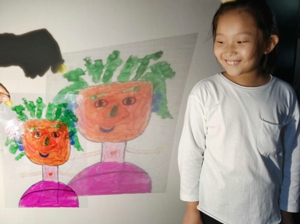 在授課過程中,輔導(dǎo)老師主要利用多種媒材把兒童畫、國(guó)畫、水彩畫、綜合版畫融入課堂,以審美觀念和人文素養(yǎng)培養(yǎng)為核心,以提升創(chuàng)新思維為重點(diǎn),傳授給學(xué)生必備的基礎(chǔ)知識(shí)與技能,助其發(fā)展藝術(shù)想象力和創(chuàng)新意識(shí),從而形成自身的藝術(shù)特長(zhǎng)和愛好,進(jìn)而培養(yǎng)學(xué)生健康向上的審美趣味、審美格調(diào)和審美理想。在課堂現(xiàn)場(chǎng),豐富多彩的“光影成像”讓孩子們從內(nèi)心深處認(rèn)識(shí)到自己;甜蜜的糖葫蘆讓孩子們露出了開心的笑容;“爺爺?shù)目诖?rdquo;讓孩子們天馬行空的想象力得到了施展……通過這一系列特殊而有趣的活動(dòng),真正讓孩子們?cè)诨顒?dòng)中學(xué)到了專業(yè)的技能。“在活動(dòng)中我學(xué)到了許多知識(shí),感到非?鞓罚液孟矚g這樣的美術(shù)課。”二(1)班王子赫開心地說道。