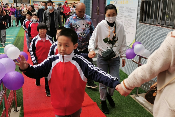 在全校師生的夾道歡迎下,在家長的陪同下,一年級的9名新生滿懷好奇地踏上紅毯,通過氣球拱門,一路歡笑步入教室。在老師的引導(dǎo)下,學(xué)生和家長有序就座。
