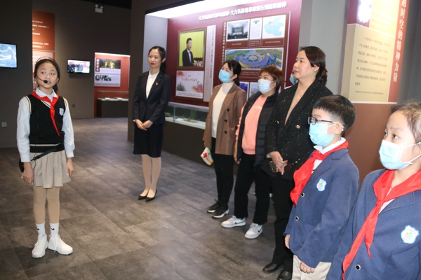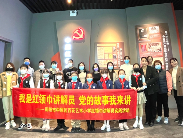 中新河南網(wǎng)12月16日電(通訊員李雪)為配合“雙減”政策,推動(dòng)社會(huì)少先隊(duì)建設(shè),形成“場館+學(xué)校”的校內(nèi)外少先隊(duì)組織體系,鄭州市中原區(qū)百花藝術(shù)小學(xué)紅領(lǐng)巾講解員們?cè)谳o導(dǎo)員老師的帶領(lǐng)下,于12月14日下午來到河南省圖書館,和這里的團(tuán)員哥哥姐姐們一起走進(jìn)“百年榮耀·中原印記——中國共產(chǎn)黨百年華誕”紅色文化中原展廳,跟著“金牌”講解員學(xué)講黨的故事。