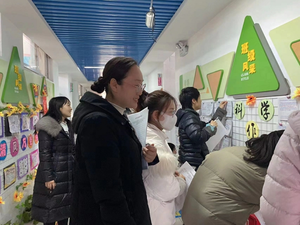 韓輝校長(zhǎng)為優(yōu)秀作品貼小紅花