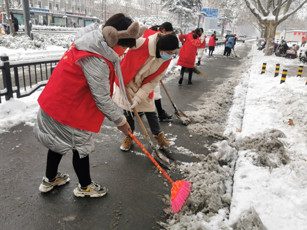 中新河南網(wǎng)1月22日電(通訊員郭瑗)1月21日的一場(chǎng)中雪如期而至,整個(gè)鄭州城銀裝素裹。為了響應(yīng)“雪停路通”的政府號(hào)召,確保市民安全出行,鄭州市中原區(qū)百花藝術(shù)小學(xué)黨支部組織黨員、教師積極參加志愿者服務(wù)活動(dòng),對(duì)建設(shè)路百花路至嵩山路段進(jìn)行了義務(wù)除雪。