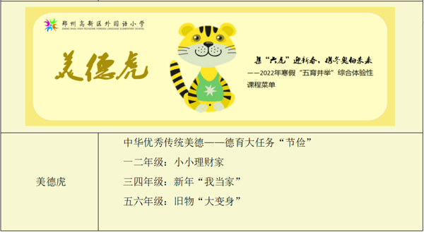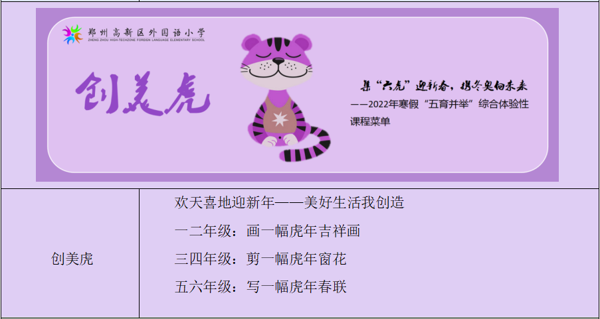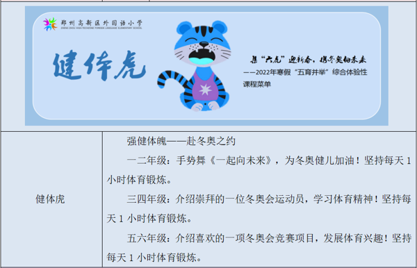 今年寒假我們?yōu)槌霾使麅簜儨?zhǔn)備了“集‘六虎’迎新春,攜冬奧向未來”——2022年寒假“五育并舉”綜合體驗(yàn)性課程,一起來看看吧!