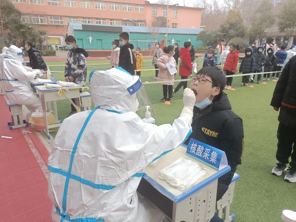 中新河南網(wǎng)2月14日電(吳勇強(qiáng))為確保學(xué)校師生員工春季“平安開學(xué)、開學(xué)平安”,根據(jù)《中原區(qū)教育系統(tǒng)師生員工新冠病毒核酸檢測(cè)工作方案》文件精神,2月13日上午8:30,鄭州市中原區(qū)建設(shè)路第三小學(xué)對(duì)全校師生員工進(jìn)行了開學(xué)前一周核酸檢測(cè),捍衛(wèi)春季開學(xué)校園防疫安全第一道防線。