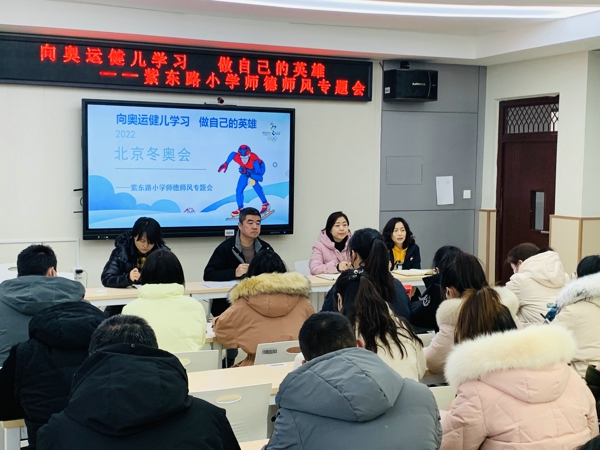 鄭州管城區(qū)紫東路小學(xué)召開“向奧運(yùn)健兒學(xué)習(xí) 做自己的英雄”師德師風(fēng)專題會