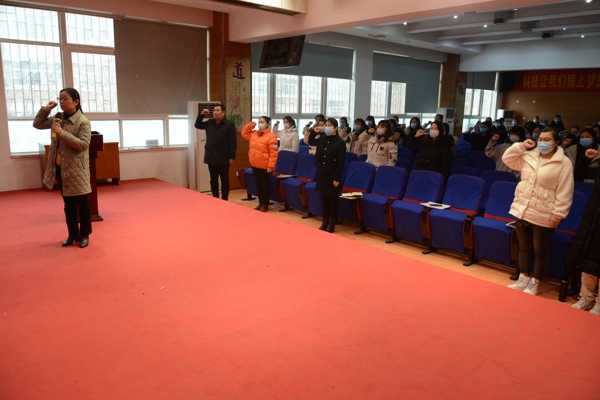 身邊的榜樣更能激勵(lì)成長(zhǎng),該校的師德先鋒肖利曉老師結(jié)合自身的教育經(jīng)歷,從“和諧的環(huán)境浸潤(rùn)、和美的班級(jí)文化、溫暖有愛的班風(fēng)”三個(gè)方面分享了她的教育感悟。接著孫冬梅校長(zhǎng)為全體教師贈(zèng)送了一份新學(xué)期特別“禮物”,她用一張張照片記錄了每位教師辛勤工作的身影,并用生動(dòng)的語(yǔ)言講述鏡頭背后的動(dòng)人故事,愛與真情匯聚成工一最美畫卷。之后,孫校長(zhǎng)又帶領(lǐng)全體教師學(xué)習(xí)文件精神,同時(shí)對(duì)師德師風(fēng)建設(shè)提出了新要求和期望;在孫冬梅校長(zhǎng)的領(lǐng)誓下,全體教師重溫教師誓詞,莊嚴(yán)宣誓,并簽下了師德師風(fēng)承諾書,一個(gè)名字、一份責(zé)任、一個(gè)承諾,表達(dá)了自己堅(jiān)定教書育人、為人師表的信念。最后學(xué)校各部門分享了新學(xué)期的各項(xiàng)工作計(jì)劃,為老師們的教育教學(xué)指明了方向。