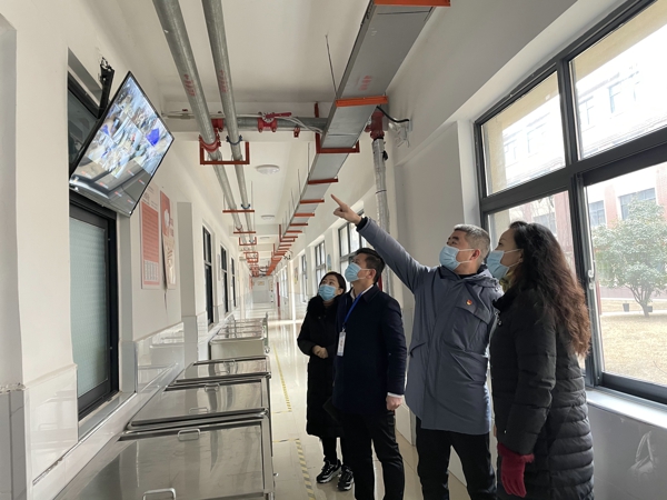 在校長曹建峰、副校長范書莉的陪同下,鄭州市中小學校責任督導王慧和田言輝檢查了學校疫情防控、食品安全、“雙減”“五項管理”落實情況、學校安全管理工作情況、以及環(huán)境整治情況等方面,深入教學樓的教室、辦公室、功能室等重點區(qū)域查看了通風消毒、物資儲備、消殺記錄等情況。同時,督導組深入廚房對學校食堂食品原料進貨查驗、操作間環(huán)境衛(wèi)生、學生餐具清洗消毒、就餐環(huán)境防疫措施落實以及從業(yè)人員健康管理等情況進行全面檢查,詳細了解了學校了學校食品安全建設(shè)。最后督導組在黨建室對學校的“雙減政策”和“五項管理”工作落實情況進行了全面、深入、細致的視導,并進行了座談?wù){(diào)研,了解了紫東路小學各項“雙減”工作的開展情況,針對存在的問題提出了整改意見。在實地檢查和聽取匯報后,督導組對學校開學工作給予了充分肯定和高度評價,并對學校后續(xù)工作提出了建議:學校要進一步落實落細防控措施,看好門、盯好人、管好事,堅決將病毒阻擋在校園之外,要真正落實“雙減”“五項管理”政策,讓每一個學生平安、健康成長。