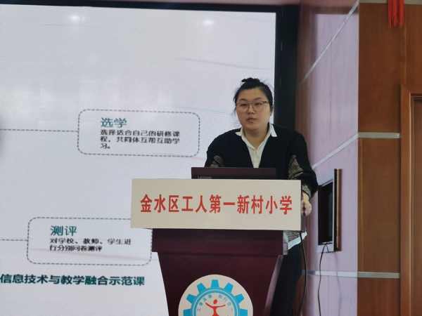 張主任從四個方面進(jìn)行了培訓(xùn):一是對2.0項(xiàng)目的背景介紹和重要性的說明;二是2.0項(xiàng)目的實(shí)施階段安排;三是對2.0項(xiàng)目的整個學(xué)習(xí)流程的詳細(xì)講解;四是整個項(xiàng)目的考核評估辦法解讀,最后是和大家一起了解學(xué)校2.0工程的愿景,并對老師們提出要求,把研修過程中學(xué)到的微能力切實(shí)應(yīng)用到教育教學(xué)中,提升自身信息技術(shù)的應(yīng)用能力,同時提高個人的信息素養(yǎng)。