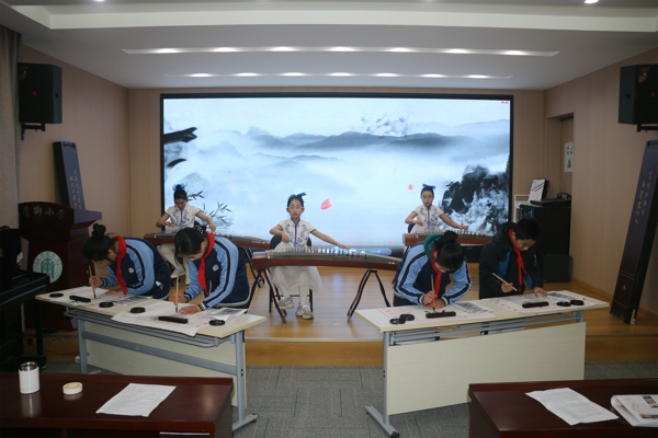 隨后,學(xué)校部分社團(tuán)的孩子還給家長(zhǎng)們帶來了繽紛多彩的社團(tuán)課程。合唱、陶笛合奏、古箏演奏、書法、魔方秀、皮影戲,孩子們精彩的表演贏得了與會(huì)家長(zhǎng)的熱烈掌聲。