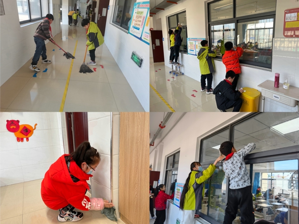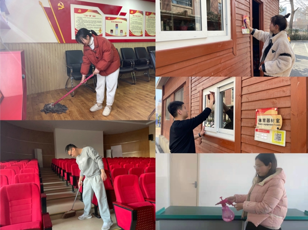 活動前,校長曹建峰帶領(lǐng)學(xué)校班子成員進行了精心安排,周密布置,并制定了相應(yīng)的活動方案,要求各辦公室、功能室、教室負責(zé)人嚴格落實責(zé)任制,把每一項任務(wù)、每一個要求具體分解、責(zé)任到人;顒又校@里到處涌動著師生們忙碌的身影,大家齊心協(xié)力,干得熱火朝天,對校園、教室、功能室、課桌椅、門窗、走廊、樓梯、衛(wèi)生間等地方進行全面打掃,認真清理衛(wèi)生死角。同時,老師們嚴格按照衛(wèi)生消殺管理的標準重點對樓道、飲水池、廁所、垃圾箱和垃圾池等角落進行消毒并做好消殺記錄,真正做到全覆蓋、無遺漏。經(jīng)過大家的共同努力,校園的環(huán)境衛(wèi)生得到進一步改善,校園面貌煥然一新。