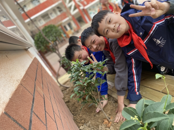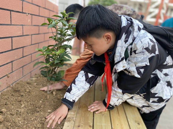 實(shí)踐活動中,五年級的孩子們在老師的帶領(lǐng)下,在學(xué)校的小花池里面栽下了一棵棵小樹苗,種下了綠色的希望,F(xiàn)場,大家個個熱情高漲,帶著鐵鍬、水桶等工具為小樹苗培土澆水,到處回蕩著孩子們的歡聲笑語。“有小樹裝點(diǎn)的校園更加美麗了,我們以后一定要好好愛護(hù)樹木,保護(hù)環(huán)境!”孩子們不禁感嘆道。