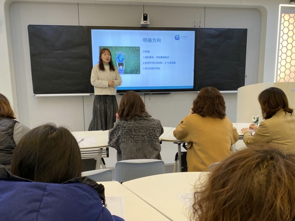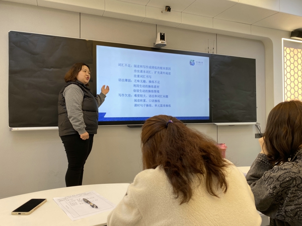 英語(yǔ)組骨干教師陳曦通過(guò)測(cè)評(píng)數(shù)據(jù)、問(wèn)題成因和改進(jìn)措施三個(gè)方面對(duì)三、四年級(jí)上學(xué)期的測(cè)評(píng)結(jié)果進(jìn)行了深入淺出的分析。陳老師提出,一線教師要立足學(xué)情,在進(jìn)行課程設(shè)計(jì)時(shí)要體現(xiàn)語(yǔ)言的交際功能,關(guān)注學(xué)生思維品質(zhì)的培養(yǎng);要善用課外閱讀資源提升學(xué)生的學(xué)習(xí)興趣和語(yǔ)言感知能力。同時(shí),陳老師結(jié)合自身的豐富經(jīng)驗(yàn)與大家分享了如何創(chuàng)設(shè)有意義的情境,使老師們受益匪淺。