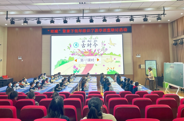 此次活動(dòng)由學(xué)校語文組精心組織,活動(dòng)內(nèi)容主要包括課例展示、評(píng)課、專業(yè)引領(lǐng)三個(gè)環(huán)節(jié)。學(xué)校全體語文教師積極參與聽課、評(píng)課,教研氣氛濃厚,取得了良好的效果。展示課上,宋慧敏老師執(zhí)教的一年級(jí)語文《古對(duì)今》緊扣“識(shí)字教學(xué)”這一主題,精心構(gòu)思,用心設(shè)計(jì),帶領(lǐng)學(xué)生在輕松的氛圍中識(shí)字。評(píng)課會(huì)上,王芳芳老師代表低段語文組闡述備課思路并以“寓教于樂學(xué)生字”為主題分享了多種識(shí)字寫字的教學(xué)方法;顒(dòng)最后,教導(dǎo)處副主任劉亞楠從識(shí)字教學(xué)的方法和技巧等方面作了專業(yè)引領(lǐng)。劉主任強(qiáng)調(diào):“低年級(jí)識(shí)字教學(xué)應(yīng)注重方式方法,以培養(yǎng)識(shí)字興趣為主。”為此,還提出了一些中肯的建議,希望低年級(jí)識(shí)字教學(xué)要注重認(rèn)寫分流、由易到難、聯(lián)系生活,達(dá)到自主識(shí)字的效果,并強(qiáng)調(diào)每位老師要繼續(xù)加強(qiáng)寫字教學(xué)指導(dǎo),力爭(zhēng)讓知識(shí)內(nèi)化于心,外化于行。