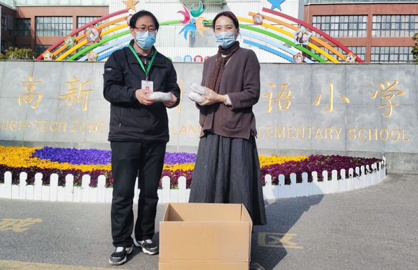 愛心筑防線,溫情暖校園。六(7)班學(xué)生薄鈞戈的家長心系外小,向?qū)W校捐贈500只KN95口罩,為學(xué)校疫情防控工作助力。外國語小學(xué)后勤服務(wù)保障研究中心時永軍主任代表學(xué)校接受捐贈,并對熱心家長給予學(xué)校的關(guān)心和幫助表示誠摯的謝意。