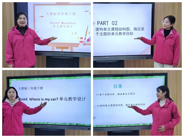 “單元疑彩課堂”教學(xué)設(shè)計(jì)分享環(huán)節(jié),老師們根據(jù)抽到的教材模塊和具體單元,現(xiàn)場(chǎng)完成教學(xué)設(shè)計(jì),并逐一進(jìn)行分享交流。解讀國(guó)家課程標(biāo)準(zhǔn),對(duì)應(yīng)學(xué)科核心素養(yǎng),建構(gòu)課程結(jié)構(gòu),提出單元大觀念,制定學(xué)習(xí)目標(biāo)與評(píng)價(jià)標(biāo)準(zhǔn),統(tǒng)籌單元與課時(shí)學(xué)習(xí)任務(wù),創(chuàng)設(shè)真實(shí)生活情境,優(yōu)化作業(yè)設(shè)計(jì),強(qiáng)化口語(yǔ)表達(dá)與書(shū)面習(xí)作的協(xié)同,體現(xiàn)“教—學(xué)—評(píng)”一致性,落實(shí)學(xué)生為本、學(xué)習(xí)高效,指向語(yǔ)言能力和思維品質(zhì)的培養(yǎng)。不同教師對(duì)于教學(xué)設(shè)計(jì)有不同的思考,形成不同的特色和亮點(diǎn),極大激發(fā)了大家的研討興趣,在交流碰撞中衍生出新的智慧。