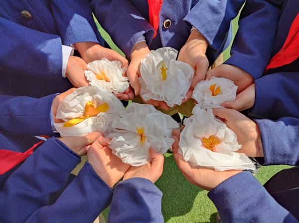 隊員們通過折紙白玉蘭,云端祭思念,用自己靈巧的小手精心制作朵朵白玉蘭緬懷先輩,以花代情,云祭思念,祈愿你我無恙,家國安好;穿越時空,借信致敬英烈,隊員們穿越時空,將思念訴諸筆端,借信向無數(shù)革命烈士為了民族獨立、人民的安危,沖鋒在前,視死如歸的英烈們致敬,借書信隔空對話,向英烈講述新時代,這盛世如你所愿;通過上主題隊課,知清明習(xí)俗,各中隊利用少先隊活動課學(xué)習(xí)清明節(jié)的由來和節(jié)日習(xí)俗,感受清明文化,感悟今日的幸福生活來之不易;通過綠色清明,祭革命英雄,為倡導(dǎo)文明祭祀,全體少先隊員參與中國文明網(wǎng)祭英烈活動,通過網(wǎng)上獻花、留言等網(wǎng)絡(luò)方式向為民族復(fù)興、國家富強而英勇獻身的民族英烈致敬,表達追思之情。