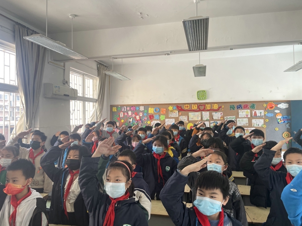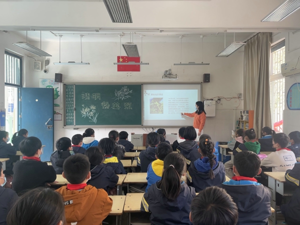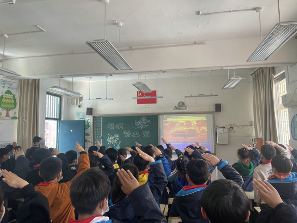 活動(dòng)在莊嚴(yán)的升旗儀式中開始,隊(duì)員們表情肅穆,立正站好,高舉右手,凝視五星紅旗。活動(dòng)中,各輔導(dǎo)員老師通過資料和圖片等形式向隊(duì)員們展示了清明節(jié)的由來、歷史淵源、傳統(tǒng)習(xí)俗等;隨后輔導(dǎo)員老師們給隊(duì)員們講述了革命故事,帶領(lǐng)隊(duì)員們觀看了革命題材影視片段,緬懷革命先烈豐功偉績(jī)。