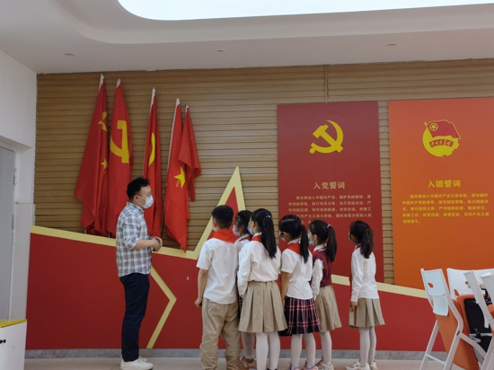 大隊輔導員徐杉杉帶領隊員們了解黨、團、隊歷史