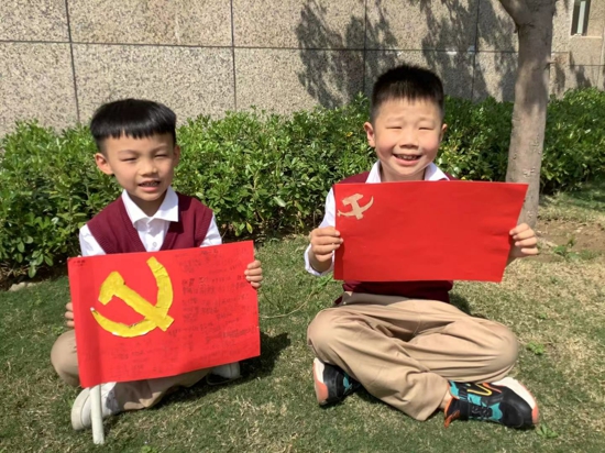 一年級學生手繪黨旗感黨恩