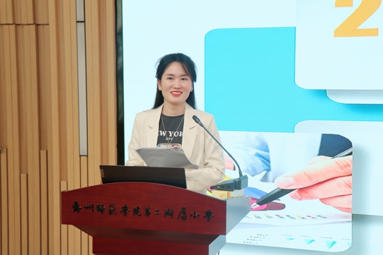 劉蓓蓓主任分享了外國語小學德育工作的探索和實踐。她以《用一朵花去燦爛滿園春色》為主題,從構(gòu)建德育課程、強化主陣地建設(shè)、提升工作效能、協(xié)同家校社共育等四個方面進行闡述。秉持“讓每個人都擁有出彩的機會”,在“大任務(wù)進階”德育課程統(tǒng)領(lǐng)下,細化育人目標,遵循兒童成長規(guī)律,融合國家、地方、校本三級課程,探索出彩評價,聯(lián)動自主管理,落實“五育并舉”,指向?qū)W生良好習慣的養(yǎng)成。該德育課程體系的創(chuàng)新性建構(gòu)與實施,為大家?guī)砜山梃b、可推廣的有效樣本。
