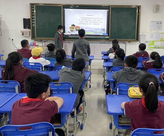 “谷雨谷雨,采茶對雨。”谷雨時(shí)節(jié)溫度適中,雨量充沛,茶樹芽葉肥碩柔軟,此時(shí)采摘的春茶滋味鮮活、香氣怡人。三四年級的“太陽花”們在主題隊(duì)會課上認(rèn)真聆聽班主任講解谷雨茶的來歷,學(xué)習(xí)中國茶文化起源、茶的功效、茶禮儀和品茶的傳統(tǒng)步驟。