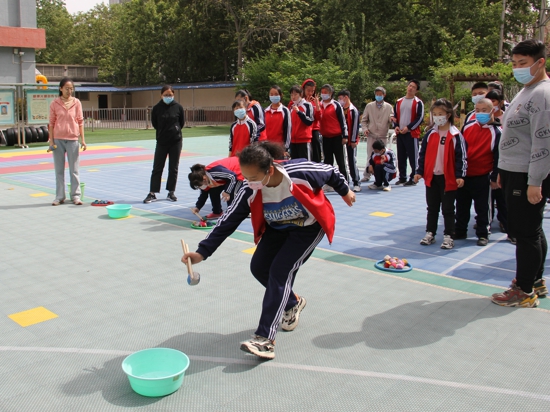 “沙包游戲”為不同年級的同學量身定做,考驗了低年級同學的身體協(xié)調(diào)能力和高年級同學的精細動作能力。“瞄準,發(fā)射……”小運動員們的精準投射引起了陣陣歡呼。高年級運動員拿著鼓槌小心翼翼地把沙包從這個筐夾在另一個筐,動作熟練流暢,大家屏氣凝神,看地津津有味。