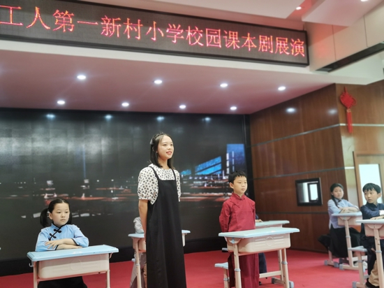 報告廳內,隊員們用課本劇形式喜迎黨的二十大,《為中華之崛起而讀書》正在有趣的上演。瞧,小演員們無比投入,用自己的肢體語言將人物角色表現(xiàn)得淋漓盡致。當童年周恩來的形象重現(xiàn)舞臺上時,那種胸懷大志,立志報國的精神感染了在場每一位人,隊員們紛紛表示,要向童年周恩來學習,為中華崛起而讀書。