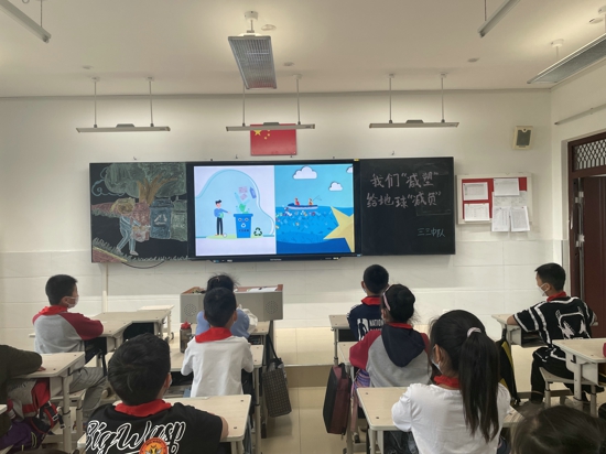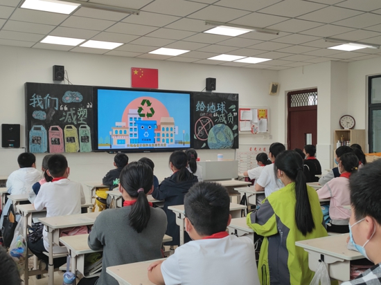 活動(dòng)中,各中隊(duì)輔導(dǎo)員帶領(lǐng)同學(xué)們認(rèn)真觀看了“為‘治塑’加油一起保護(hù)地球”宣傳視頻,引導(dǎo)學(xué)生正確對(duì)待塑料,告訴學(xué)生我們國(guó)家采取了哪些措施來治理塑料污染。隨后,各中隊(duì)又組織少先隊(duì)員座談交流學(xué)習(xí)的感悟。大家暢所欲言,少先隊(duì)員們紛紛表示,一定不使用一次性塑料飯盒、一次性餐桌布和一次性筷子;出門購(gòu)物時(shí)常備布兜,減少使用塑料包裝物的頻率;不亂扔垃圾和廢棄物,將垃圾放到指定的垃圾箱內(nèi),做好垃圾分類;自己一定會(huì)帶動(dòng)家人和朋友少使用一次性塑料制品多使用環(huán)保產(chǎn)品。