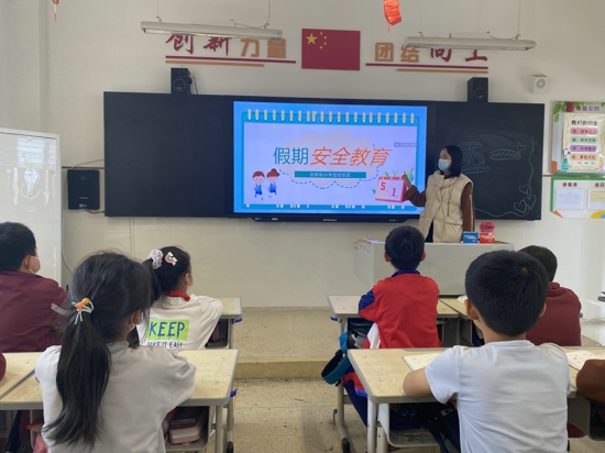 學(xué)校通過(guò)開(kāi)展班會(huì)進(jìn)行講解安全知識(shí),防疫知識(shí);主要針對(duì)疫情防控、防溺水、交通、飲食、消防、防汛等安全方面的內(nèi)容進(jìn)行廣泛宣傳教育,同時(shí)也對(duì)學(xué)生的思想上進(jìn)行心理疏導(dǎo),緩解學(xué)生心理壓力。并利用微信群發(fā)放《致家長(zhǎng)的一封信》,告知廣大師生及家長(zhǎng)做好假期疫情防控和安全防范。