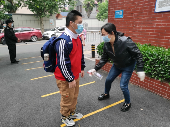 一大早,學(xué)校值班領(lǐng)導(dǎo)和行政組成員在學(xué)校門口集合,分工協(xié)作,迎接學(xué)生入校。全校師生進(jìn)入校園保持“兩米線”距離,嚴(yán)格執(zhí)行“測(cè)溫、驗(yàn)碼、戴口罩”防疫三要素,師生上交健康承諾書和返校前連續(xù)14天的健康狀況記錄表,學(xué)校并對(duì)學(xué)生所帶物品進(jìn)行消毒,經(jīng)過(guò)一系列防疫措施后,學(xué)生方可進(jìn)入校園,其他外來(lái)人員一律不得入校。