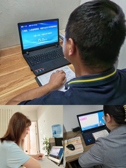 本次活動采用線上直播的方式進行。江津區(qū)各個學(xué)校教師代表圍繞“雙減”背景下優(yōu)化作業(yè)設(shè)計這一主題,或深入淺出、或理論聯(lián)系實際,從不同的角度暢談了在優(yōu)化作業(yè)方面有效獨到的做法。如四牌坊尚融小學(xué)方英老師從緊扣要素整體架構(gòu)、單元重組整合作業(yè)、聚焦素養(yǎng)優(yōu)化作業(yè)三個方面進行分享,貫穿大單元教學(xué)設(shè)計理念,體現(xiàn)對教學(xué)內(nèi)容的整體設(shè)計。石壩街小學(xué)饒芹老師結(jié)合學(xué)科特點,從課前預(yù)習(xí)、課堂練習(xí)、課后練習(xí)三方面展開作業(yè)設(shè)計,強調(diào)設(shè)計作業(yè)要尊重學(xué)習(xí)規(guī)律,體現(xiàn)由易到難的過程;關(guān)注個體差異,落實因材施教;注重環(huán)節(jié)相扣,指向課程教學(xué)目標(biāo)等。紫東教師認(rèn)真地聆聽著各位老師的分享,紛紛表示在今后將提高自主設(shè)計作業(yè)能力,切實減輕學(xué)生的課業(yè)負(fù)擔(dān)。