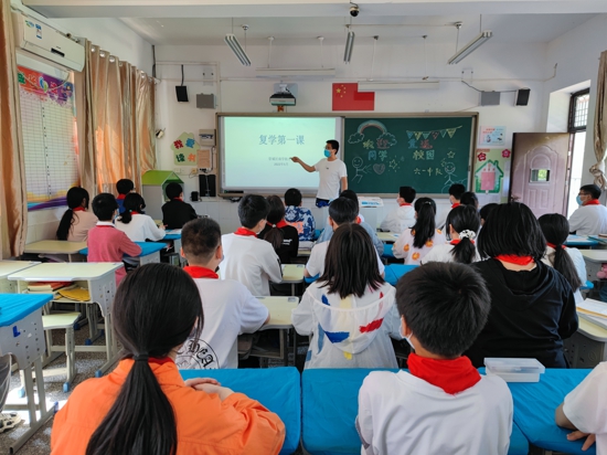 中新河南網(wǎng)5月19日電(吳勇強)夏花開得正艷時,莘莘學(xué)子回歸日。5月19日,鄭州市管城回族區(qū)南學(xué)街小學(xué)的學(xué)子們正式回歸校園,為了讓學(xué)生快速適應(yīng)疫情防控下的校園生活,確保學(xué)生返校復(fù)學(xué)后的身心健康,順利過渡到線下學(xué)習(xí)中,學(xué)校統(tǒng)一組織開展了“返校復(fù)學(xué)第一課”活動。