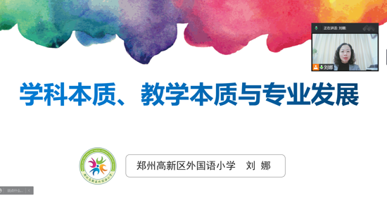 根據(jù)河南省國培計劃一對一精準幫扶培訓(xùn)要求,5月21日,受洛陽師范學院邀請,鄭州高新區(qū)外國語小學劉娜校長為洛陽市欒川縣小學教師開展了主題為《學科本質(zhì)、教學本質(zhì)與教師專業(yè)發(fā)展》的培訓(xùn)。按防疫要求,采用線上形式。