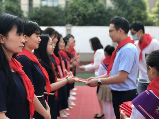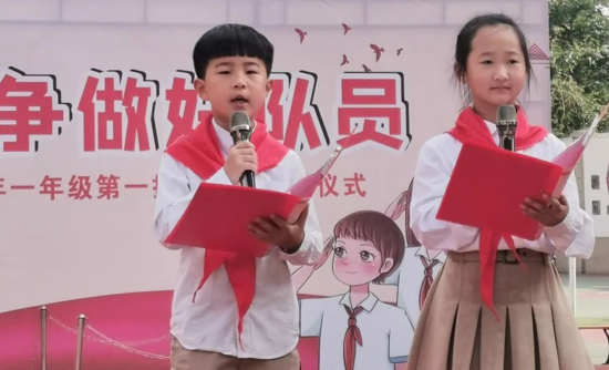 唱隊歌、佩戴紅領(lǐng)巾、宣誓、呼號……鮮艷的紅領(lǐng)巾映襯著少先隊員一張張朝氣蓬勃的笑臉,“小嫩芽們”從現(xiàn)在起正式加入中國少年先鋒隊。第一次唱響少先隊隊歌,第一次佩戴紅領(lǐng)巾,第一次敬標(biāo)準(zhǔn)的少先隊隊禮,第一次在隊旗下立下錚錚誓言。莊嚴(yán)的儀式和難忘的體驗在他們心中播下理想和信念的種子。