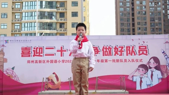 鄭州高新區(qū)外國語小學(xué)舉行“喜迎二十大、爭做好隊員”新隊員入隊儀式