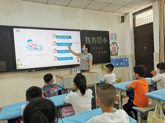 據(jù)悉,活動前期,該校大隊部給各班發(fā)放防溺水承諾書、致家長和孩子的一封信。全體學(xué)生在防溺水簽名卡上簽字,以實際行動來表明自己預(yù)防溺水、珍愛生命的承諾,時刻銘記防溺水安全的重要性。此外,各班班主任老師利用班會課時間,進(jìn)行防溺水主題教育。課堂上,班主任老師通過列舉溺水傷亡的悲慘案例,告訴學(xué)生“溺水身亡”是我國中小學(xué)生意外身亡事故中的“頭號殺手”。同時,老師們向?qū)W生介紹了游泳時注意事項、溺水的主要原因和急救、自救常識。