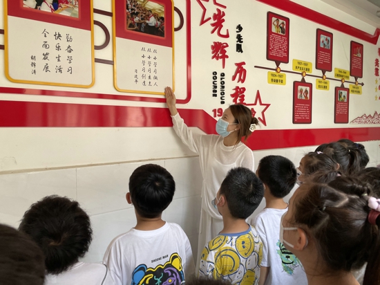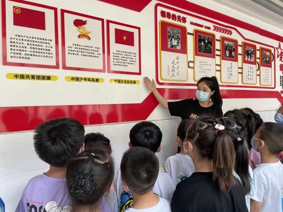 活動中,各班主任在班內(nèi)通過視頻、動畫、PPT講解、現(xiàn)場指導(dǎo)等方式,向孩子們宣講和介紹了少先隊的名稱、少先隊的創(chuàng)立者和領(lǐng)導(dǎo)者、隊旗、隊徽的含義、少先隊員的標志、少先隊的作風(fēng)、隊歌、系紅領(lǐng)巾、敬隊禮等知識,以此來激勵孩子們嚴肅履行少先隊“六知”、“六會”、“一做”。此外,為充分發(fā)揮少先隊活動墻、活動室的陣地組織作用,各班主任結(jié)合一年級入隊前教育,積極帶領(lǐng)學(xué)生對活動墻上的少先隊呼號、隊徽、隊歌、誓詞,以及黨的歷代領(lǐng)導(dǎo)人對少先隊的寄語、隊章、少先隊風(fēng)采等,進行了講解,講解過程中,同學(xué)們聽得津津有味,目光久久停留在每一個版面上,眼中充滿了欣喜和向往。