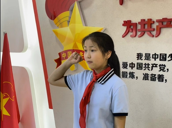 車(chē)婉玉同學(xué)帶領(lǐng)新隊(duì)員宣誓