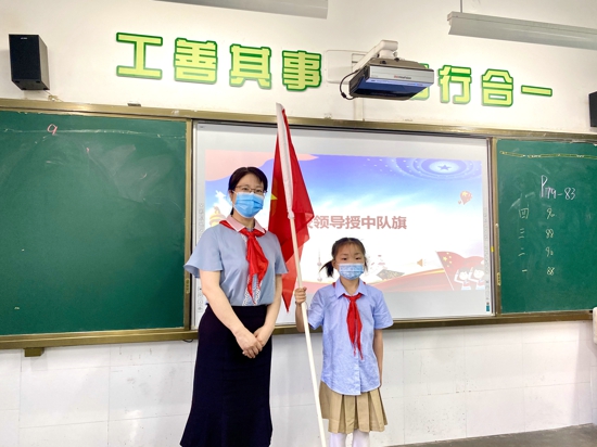 李校長(zhǎng)為中隊(duì)授中隊(duì)旗