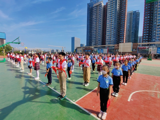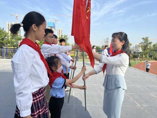 副校長于艷麗為新建中隊授旗