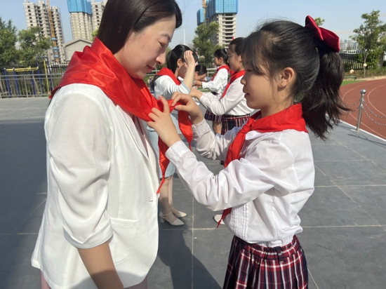 上午8:00,艷陽高照、隊旗飄揚。以“喜迎二十大、爭做好隊員”為主題的新隊員入隊儀式在學(xué)校操場上拉開了序幕。少先隊優(yōu)秀代表為參會的學(xué)校領(lǐng)導(dǎo)們獻上鮮艷的紅領(lǐng)巾。