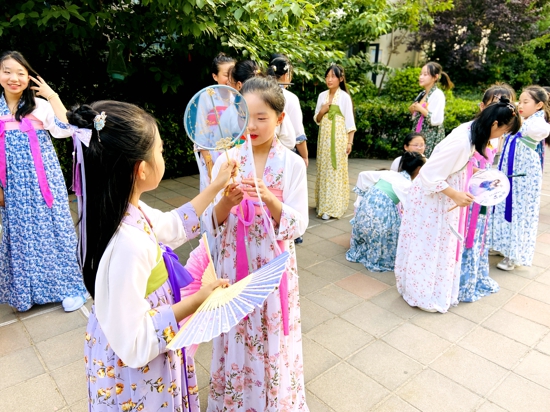 一年級的龍寶們學(xué)做故事扇子,讓膾炙人口的詩詞佳句躍然扇上。