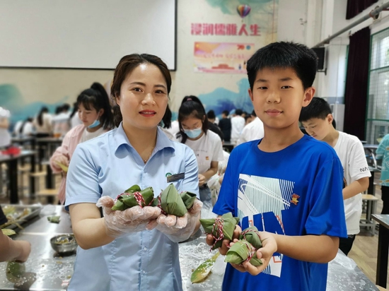 學(xué)生和老師們一起包粽子