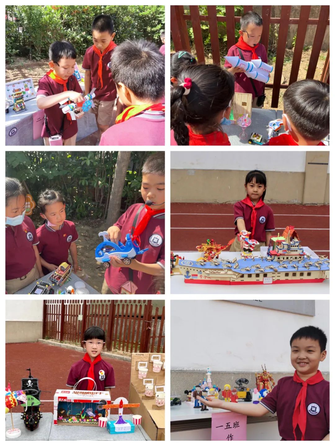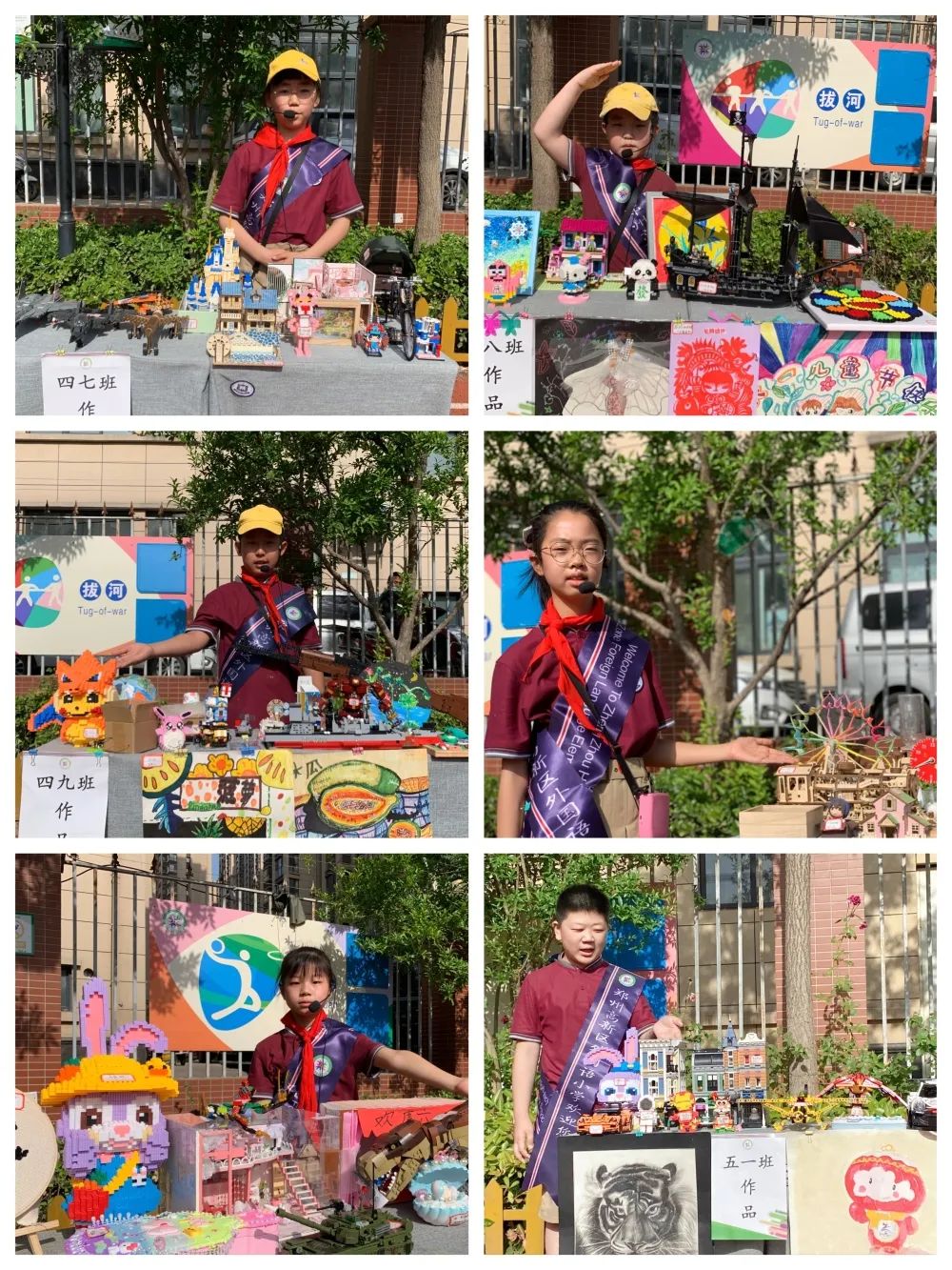 每個班級都布置了自己的“攤位”,要將班級所有學(xué)生的出彩成果“擺攤兒”展示;騽(chuàng)意發(fā)明,或精美手工,或傳統(tǒng)技藝,或優(yōu)秀作業(yè),或翰墨書法,或繪本創(chuàng)編……,每個出彩果兒都使出了自己的“看家本領(lǐng)”,每個班級都派出了“接待團”、“講解團”,向路過自己“攤位”的老師和同學(xué)展示自己班級學(xué)生的風(fēng)采。在展示中肯定自我、相互認(rèn)同,在交流中增長見識、啟迪智慧。